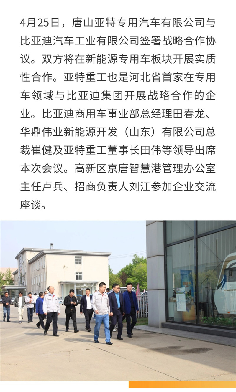 亚特重工与比亚迪集团达成战略合作